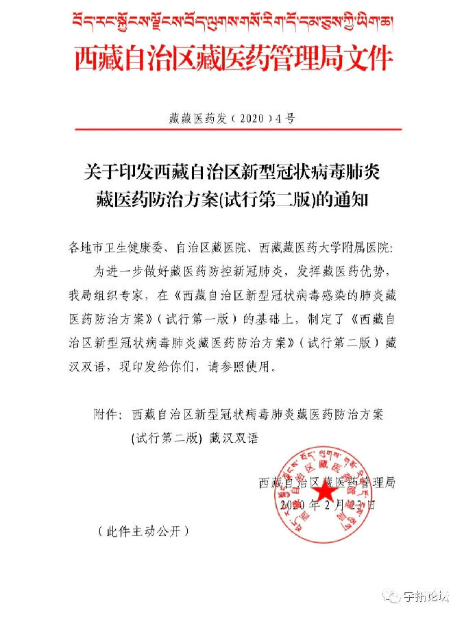 西藏自治区藏医药管理局发布的《关于印发西藏自治区新型冠状病毒肺炎藏医药防治方案(试行第二版)的通知》中,我公司生产的十味龙胆花颗粒被列为防治推荐用药。